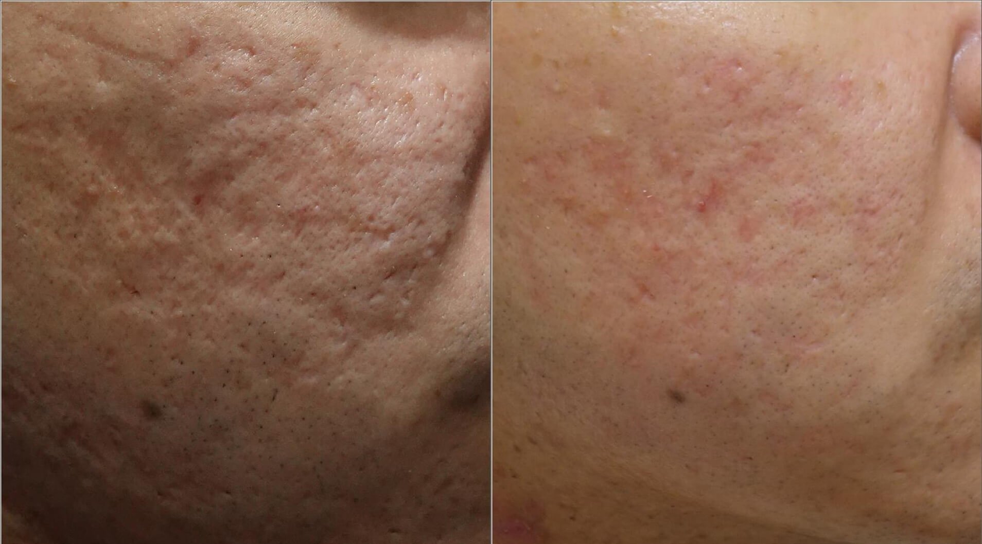 - 凹陷型痘疤:是最難治療的後遺症,需要多次治療,通常需要6-12個月才能看到明顯改善。