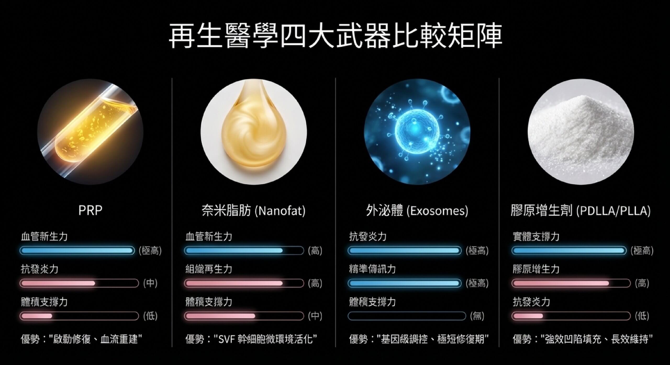 2. 再生醫療技術深度解析:外泌體、PRP 與奈米脂肪